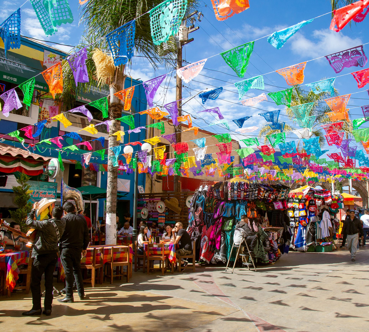 Visite la bulliciosa Avenida Revolución, el centro turístico de Tijuana con sus coloridas tiendas, restaurantes y bares, perfecto para ir de compras, comer y disfrutar de la vida nocturna de la ciudad.